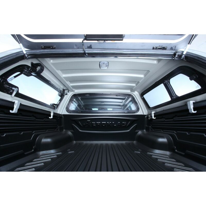 El interior ofrece un atractivo acabado texturizado, sin cableado externo ni soportes para un acabado fácil y sin olores. Todas las cubiertas de la capota Aeroklas están fabricadas con ABS 100% reciclable.