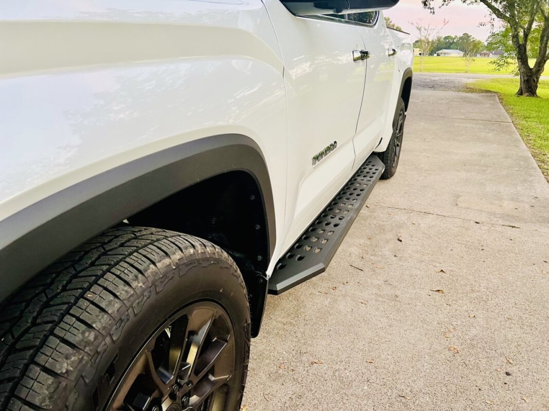 Pisadera de fierro con tratamiento anti-corrosivo. Superficie ancha y ranurada para facilitar acceso a la cabina y permitir la evacuación de barro y nieve. Diseño off-road de bajo perfil tipo Raptor. Sistema de sujeción al chasis diseñado a la medida de cada camioneta. NO se perfora, o modifica estructura OEM. Diseñado en USA y fabricado en México.