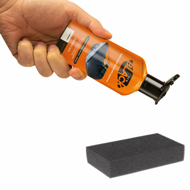 - La aplicación de New Black es muy sencilla y rápida. Limpiar la superficie de la campana con agua y jabón y dejar secar a la sombra. Luego, con una esponja seca, extienda el producto con movimientos circulares y espere 15 minutos.