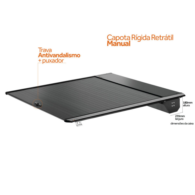 - Dimensiones de la Caja de la Tapa Retráctil Manual: 180mm de altura y 235mm de ancho.